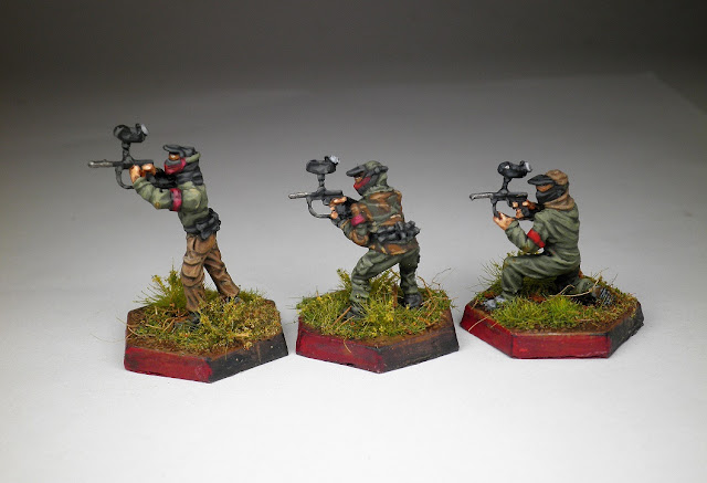 Close up shots of the red team, I tried to paint at least one idem of clothing or gear in the teams colours. |