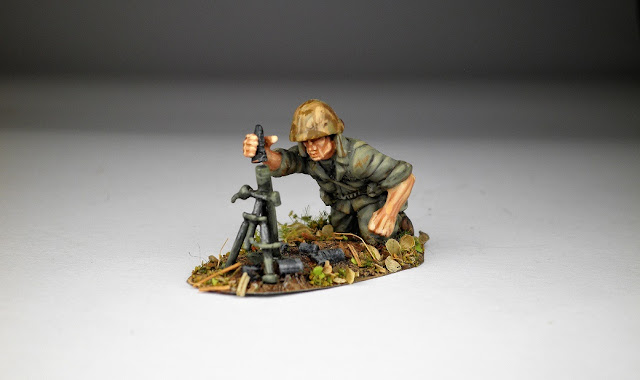 - optional to use VMC Flat Earth with a small dry brush to very lightly dry brush areas that would normally rub against the ground if the figure was in a prone position, elbows, knees.